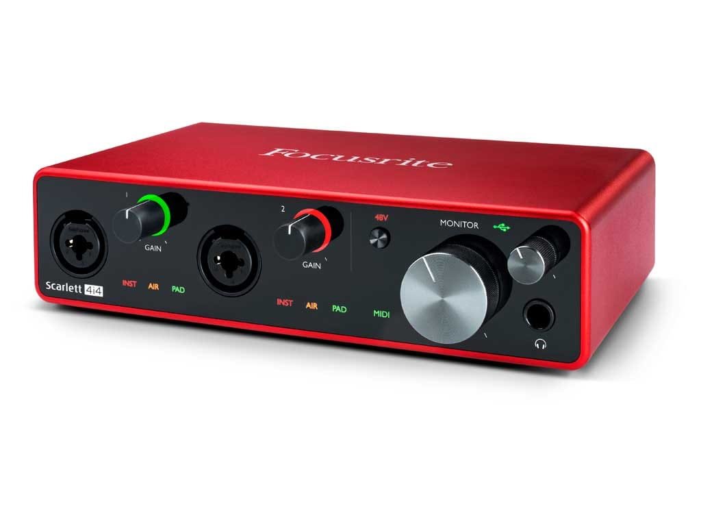 Waar zijn voorganger (de Focusrite Scarlett 2i4 MK2) slechts 2 inputs had, heeft deze nieuwe aanwinst 4 in- en outputs! Ik heb het over de Focusrite Scarlett 4i4 MK3, die in vele opzichten verbeterd is t.o.v. zijn voorganger. Focusrite staat bekend om haar kraakheldere pre-amps en degelijke bouwkwaliteit. Zo ook deze externe geluidskaart met 4 analoge inputs voor microfoon-, instrument- én lijnsignalen en 4 analoge outputs. Daarnaast is dit model uitgerust met een MIDI in- en output, wat hem geschikt maakt om met MIDI uitgeruste synthesizers aan te sturen en/of MIDI op te nemen. De 4i4 MK3 is dan ook gemaakt voor de muzikant en producer die nét wat meer connectiviteit nodig heeft. De 24-bits/192kHz geluidskwaliteit en het verberde dynamisch bereik van maarliefst 111 dB, zorgt ervoor dat je alle details kunt opnemen en terughoren. En dit allemaal via een snelle USB-C verbinding met je Mac of PC, zonder bijkomstigheid van een externe voeding. Een andere leuke nieuwe toevoeging, is